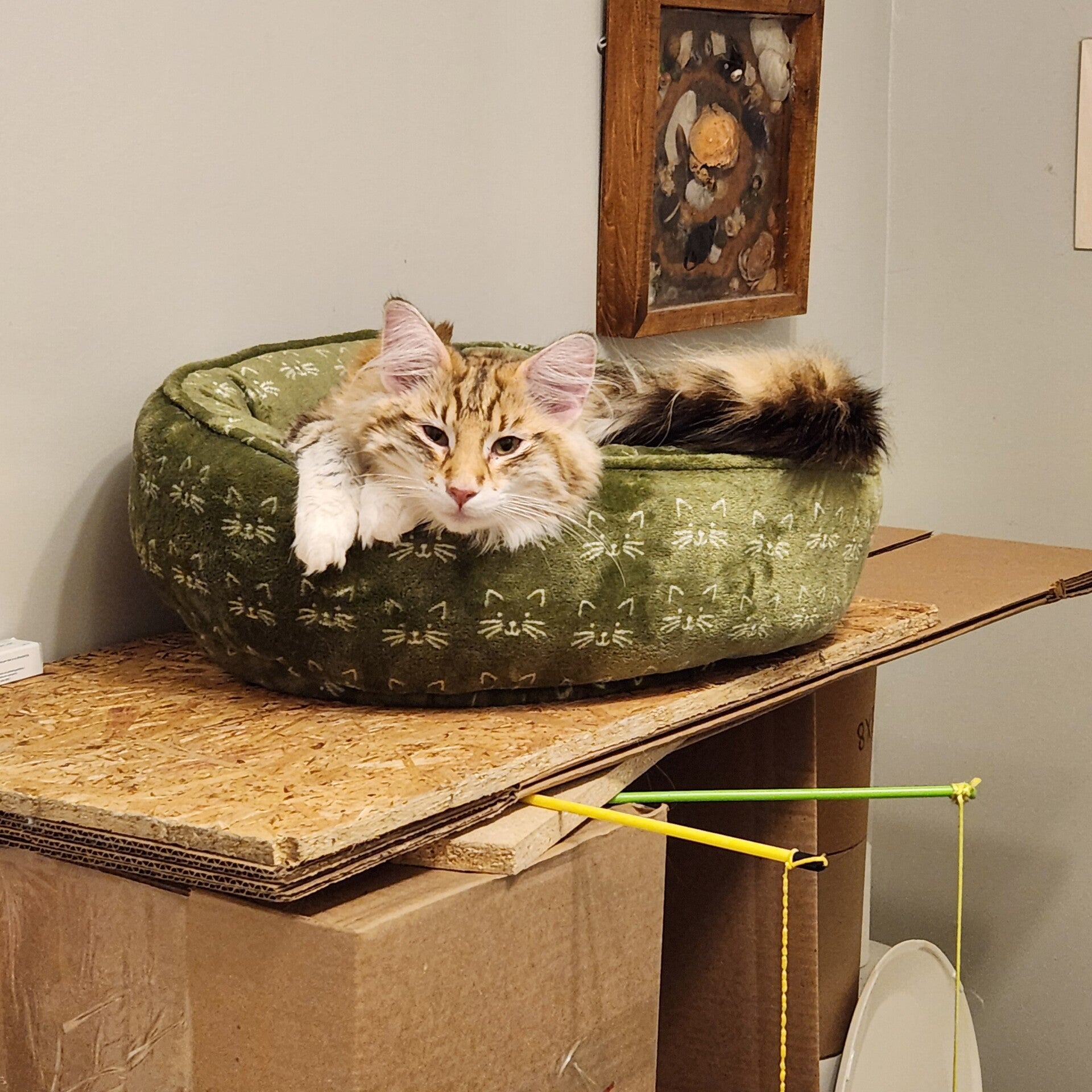 Sunny est né le 26 juillet 2023, il est très fier de sa personne, on le voit par sa posture. Mais malgré tout, il est un gros nounours câlineux et colleux.